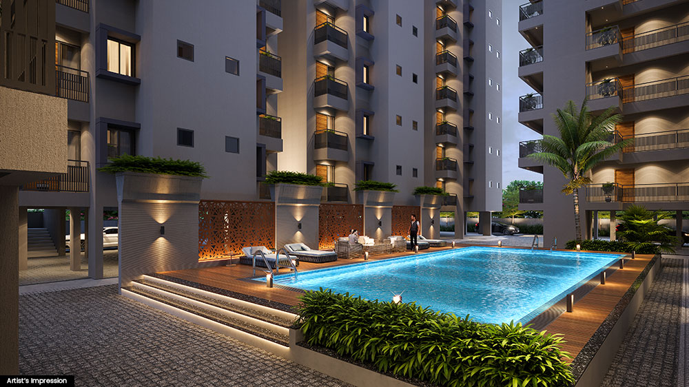 Step into the calm, cool waters of the pool at the end of a long day. Let your senses relax as the soothing ripples gently caress over you. And feel rejuvenated instantly. At Golden Woods Utsav, the tranquil blue swimming pool within premises will make this your daily reality!